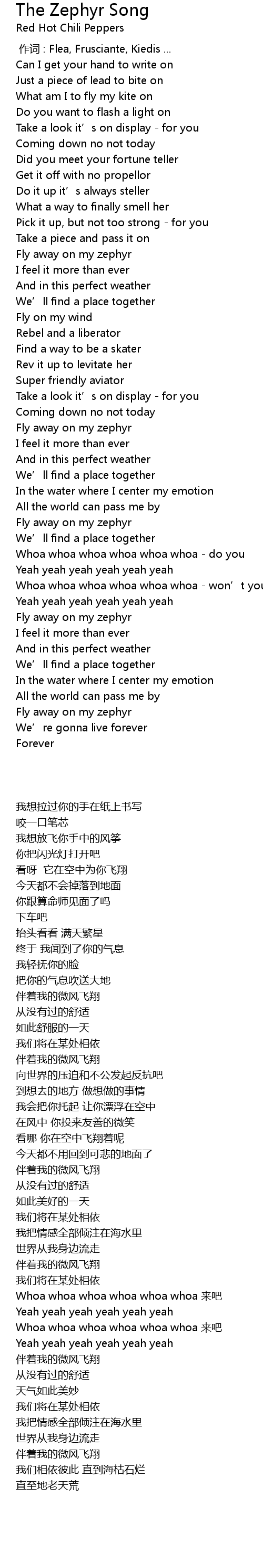 | 歌曲 | The Zephyr Song |
