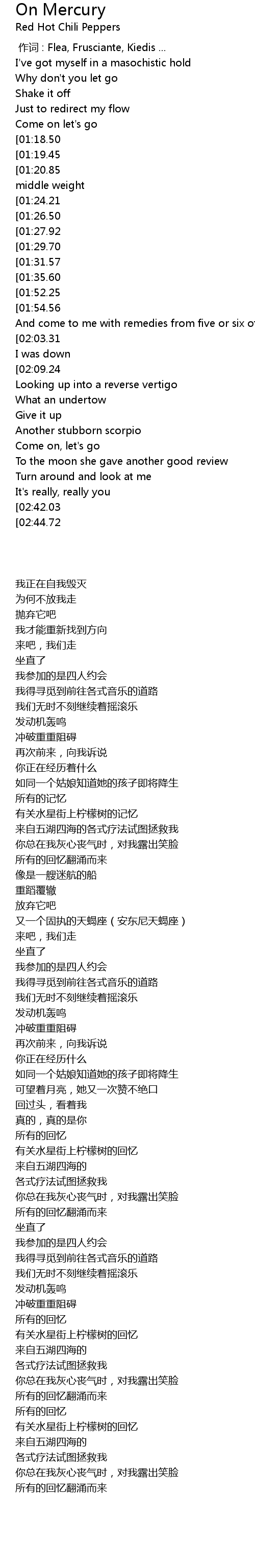 | [00:00.00] | 作词 : Flea, Frusciante, Kiedis ... |