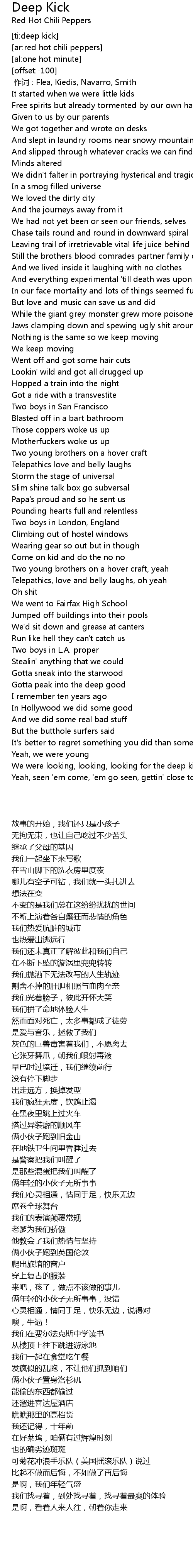 | [00:00.00] | 作词 : Flea, Kiedis, Navarro, Smith |