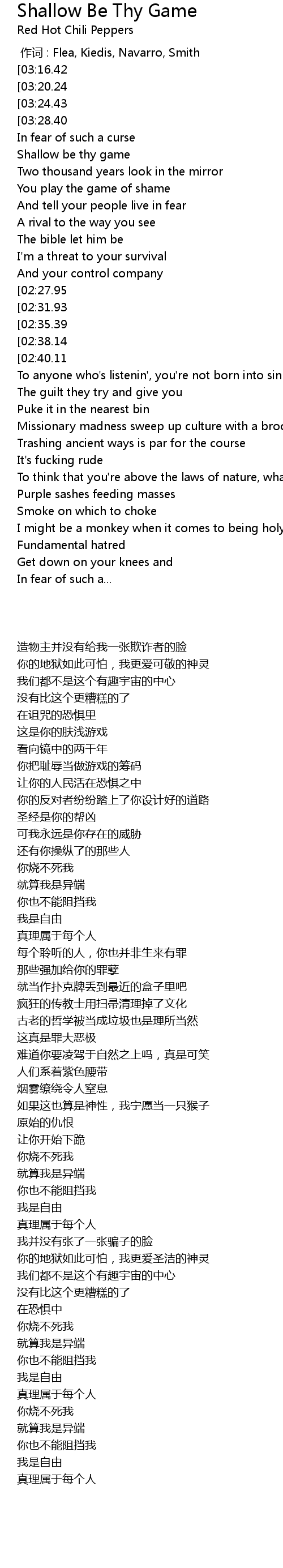 | [00:00.00] | zuò cí : Flea, Kiedis, Navarro, Smith |
