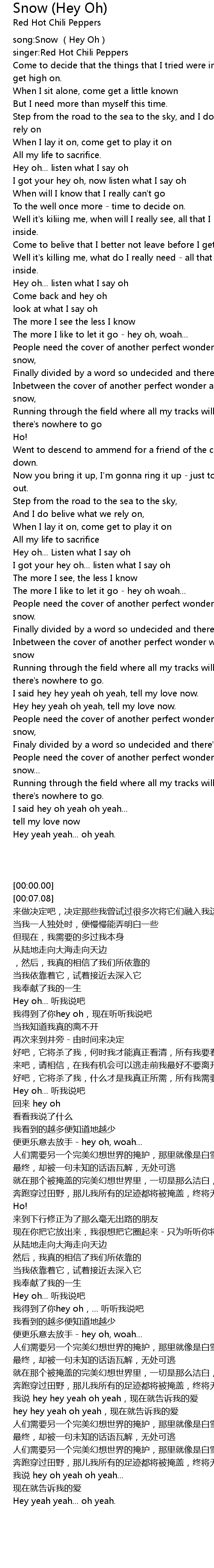 | [00:00.00] | song:Snow (Hey Oh) |