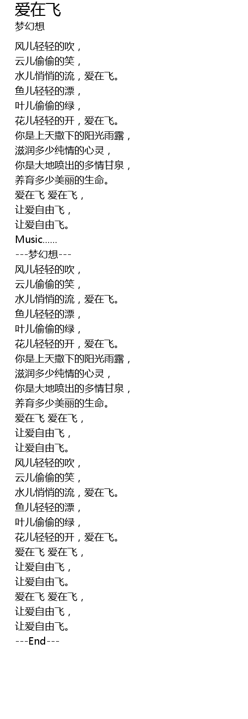 | [01:56.37] | 花儿轻轻的开,爱在飞。 |