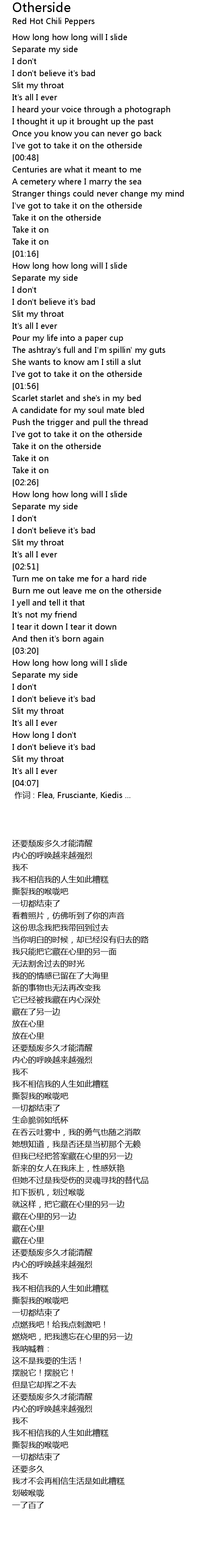 | [00:00.00] | zuò cí : Flea, Frusciante, Kiedis ... |