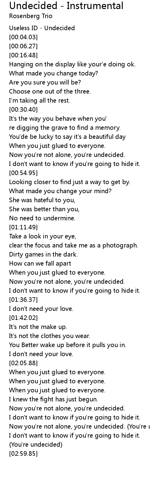 Now you're not alone, you're undecided. (You're undecided) |