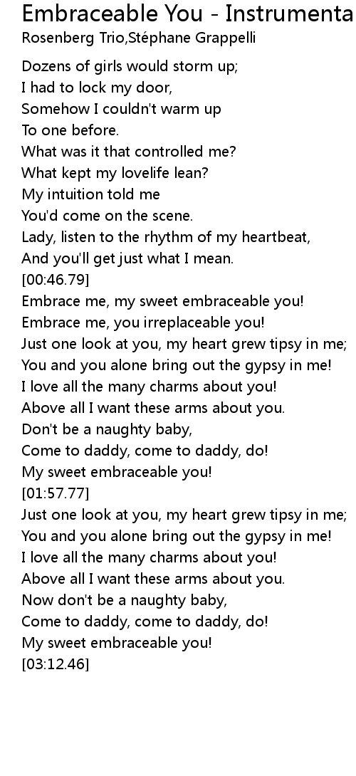 Embrace me, my sweet embraceable you! |