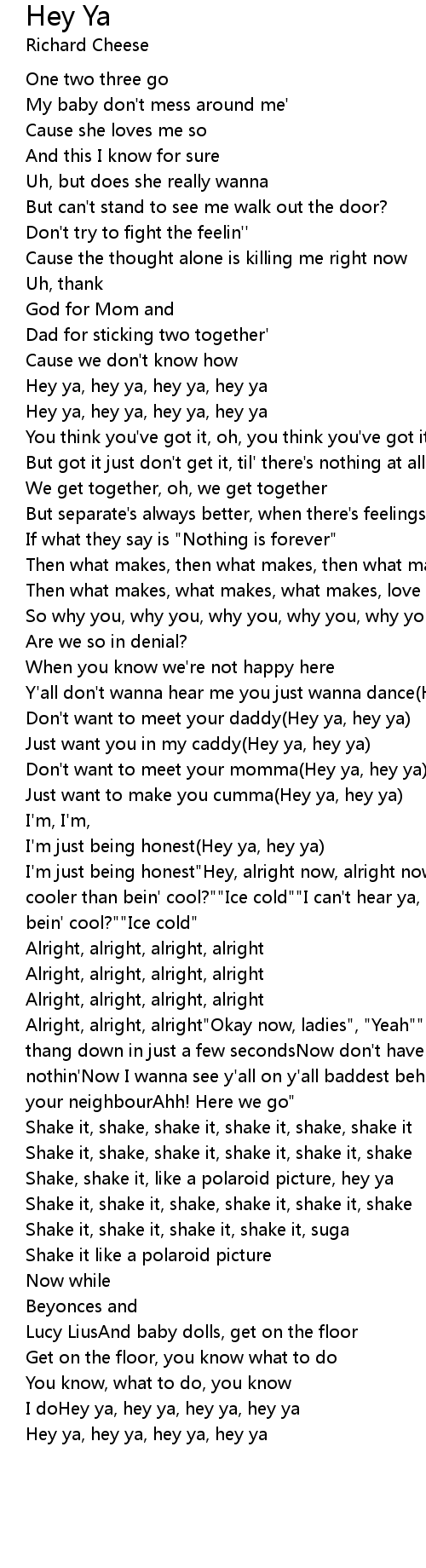 Hey ya, hey ya, hey ya, hey ya |