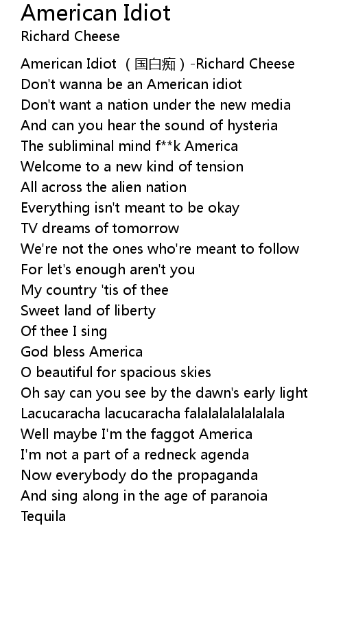 | [00:00.00] | American Idiot guo bai chi Richard Cheese |