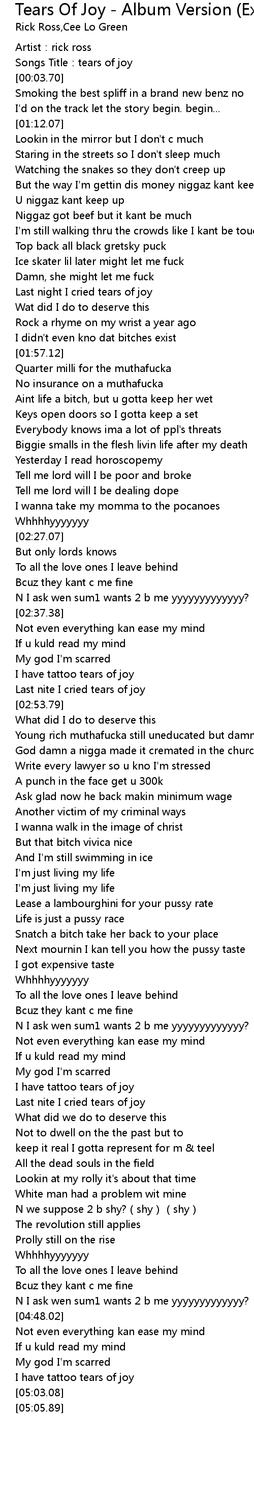 | 歌曲 | Tears Of Joy - Album Version (Explicit) |
