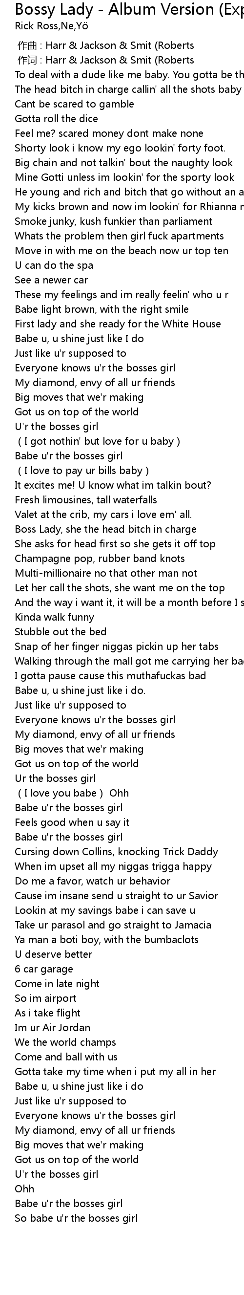 | [00:59.17] | Everyone knows u' r the bosses girl |