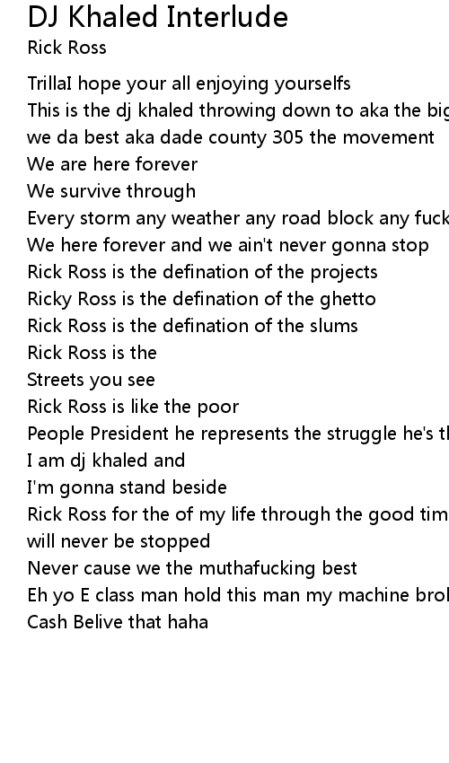 | Rick Ross for the of my life through the good times through the bad times see we will never be stopped | |