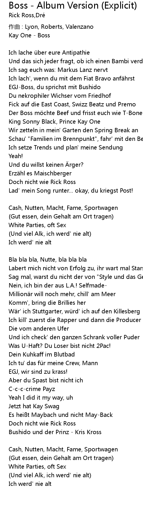 | Cash, Nutten, Macht, Fame, Sportwagen | |
