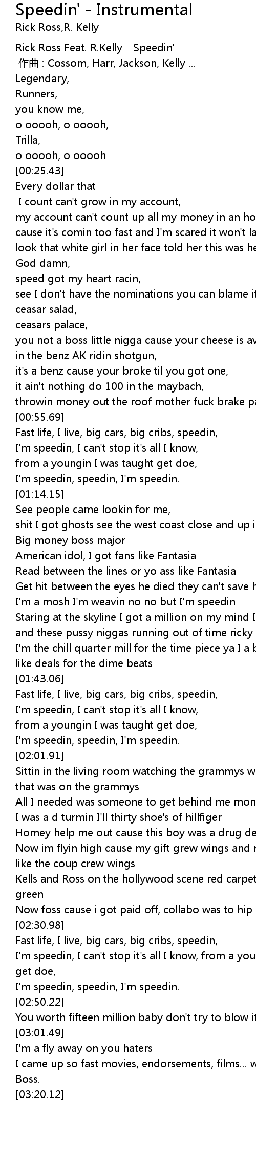 [00:-05.00] Rick Ross Feat. R.Kelly - Speedin'