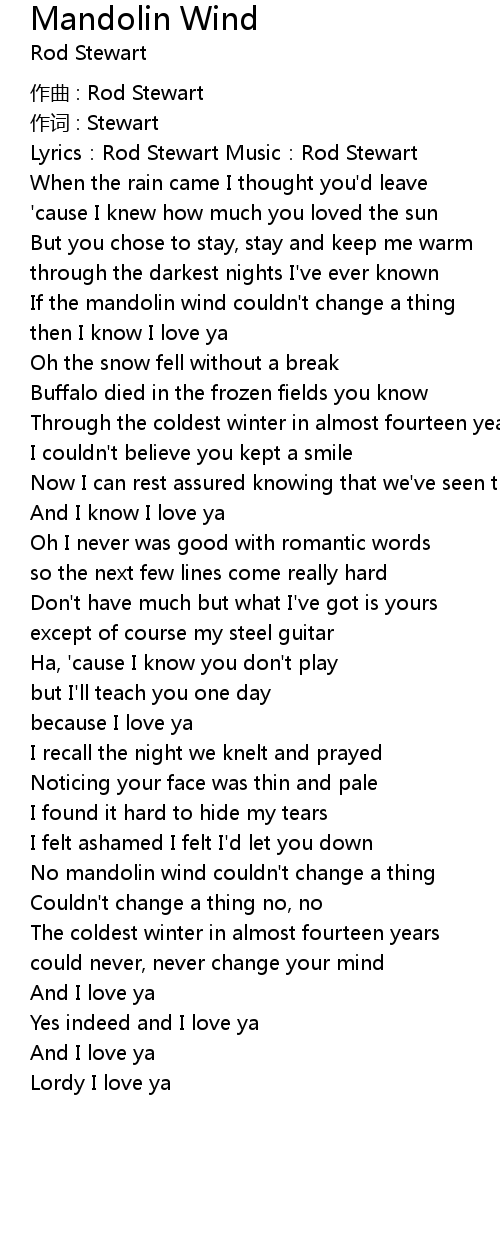 | 歌曲 | Mandolin Wind |