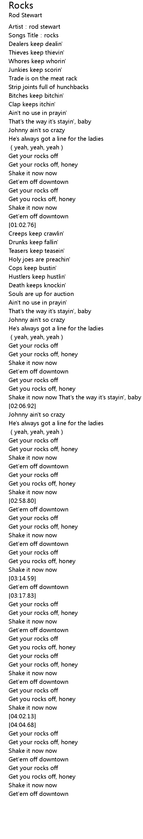 | [03:02.71] | Get your rocks off, honey |