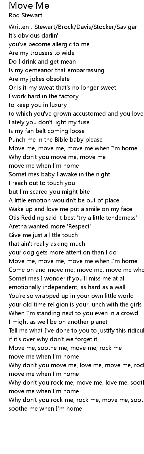 | Why don' t you rock me, rock me, move me, soothe me | |