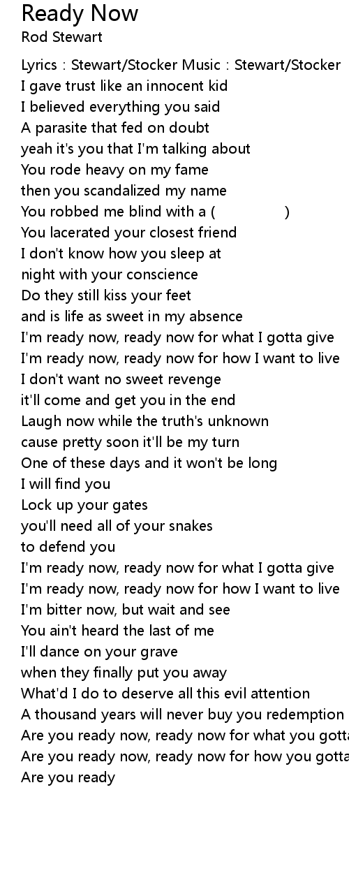 | Are you ready now, ready now for what you gotta give | |