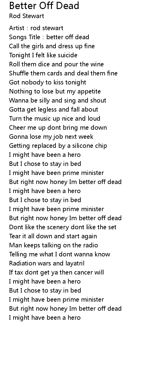 | [00:04.35] | Songs Title:better off dead |
