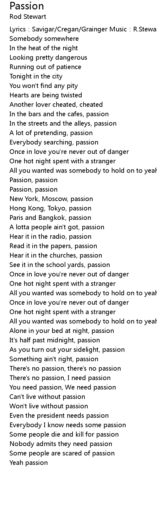 | Everybody I know needs some passion | |