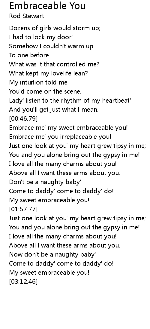 Embrace me' my sweet embraceable you! |