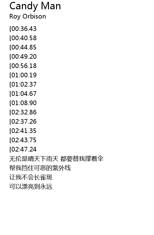 | [01:55.41][00:40.58] | CANDYMAN 送我欢笑和快乐 |