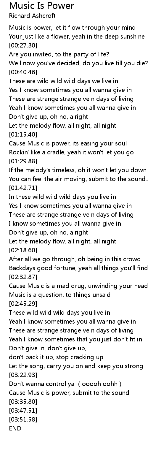 | [03:29.58] | Cause Music is power, submit to the sound |