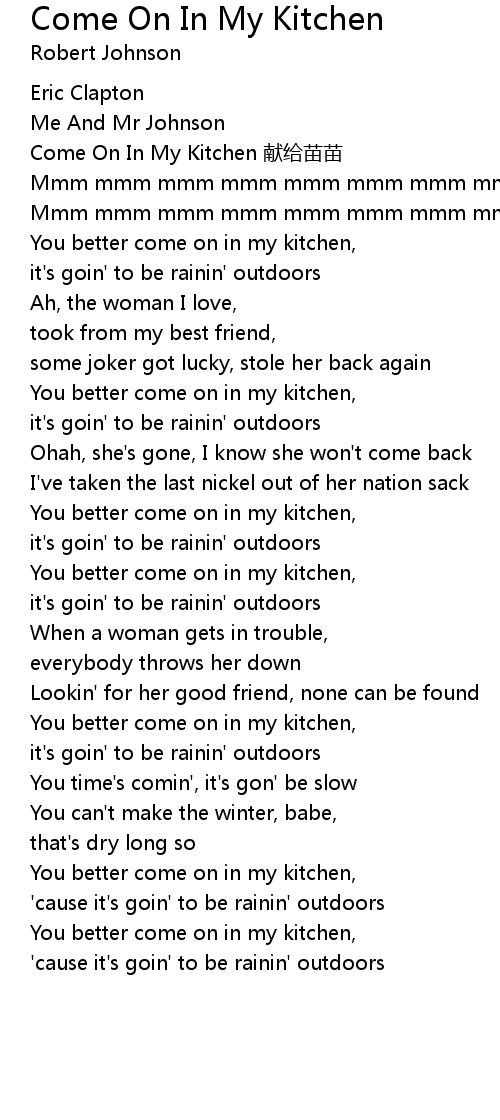 | 歌曲 | Come On In My Kitchen |