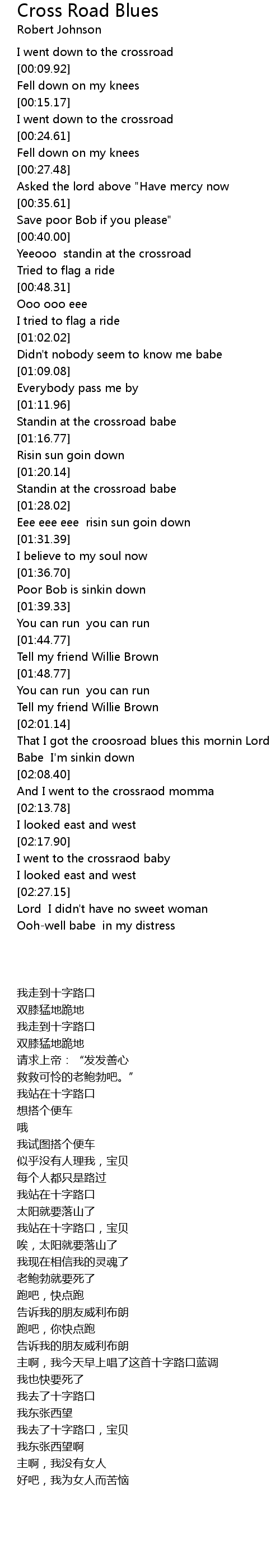 And I went to the crossraod momma |