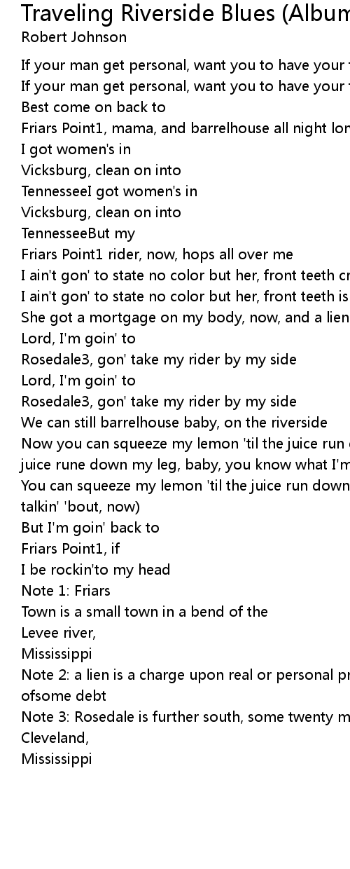 Now you can squeeze my lemon 'til the juice run down my...(spoken: 'til the juice rune down my leg, baby, you know what I'm talkin' about)