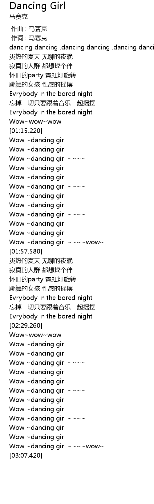| [00:07.100] | dancing dancing .dancing dancing .dancing dancing .dancing dancing |