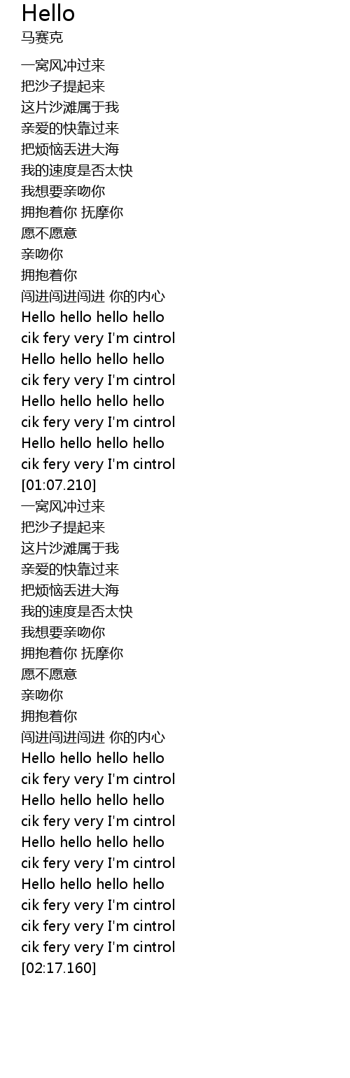 | [01:45.150] | Hello hello hello hello |