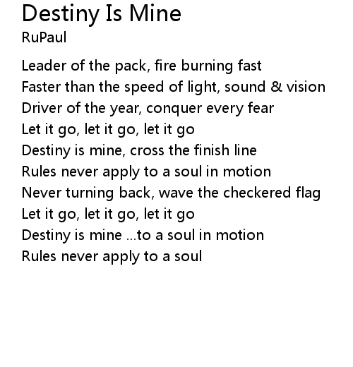 | Destiny is mine, cross the finish line | |