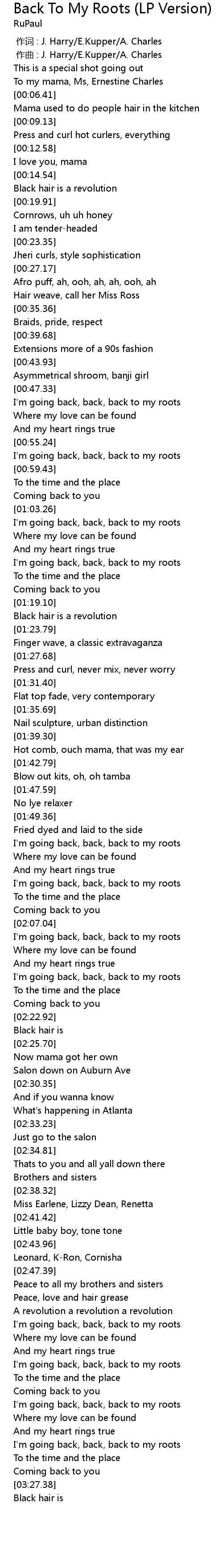 | [03:19.52] | I'm going back, back, back to my roots |