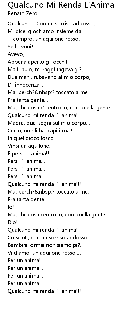 | 歌曲 | Qualcuno Mi Renda L'Anima |
