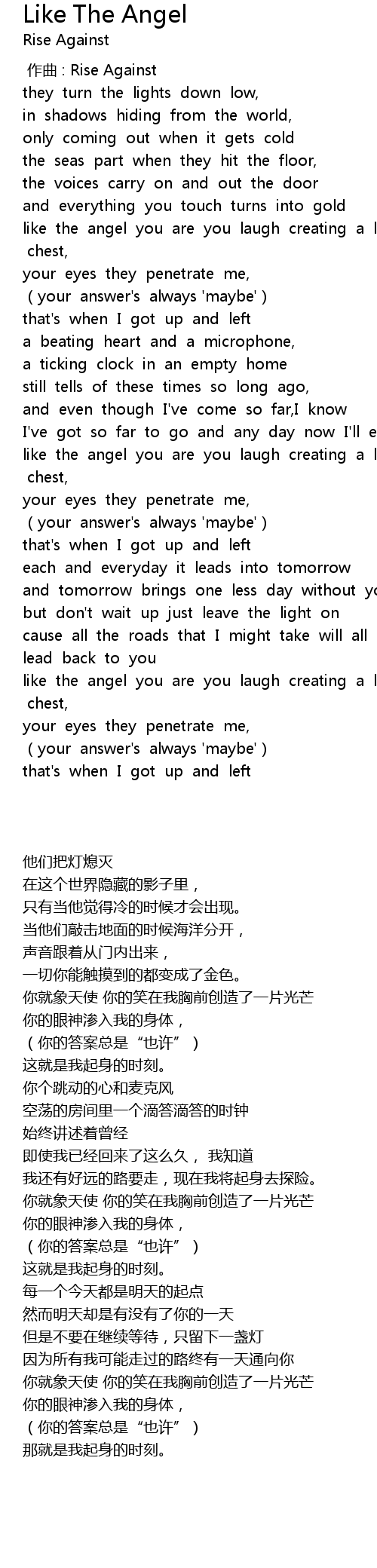 | [02:10.68] | 你就象天使 你的笑在我胸前创造了一片光芒 |