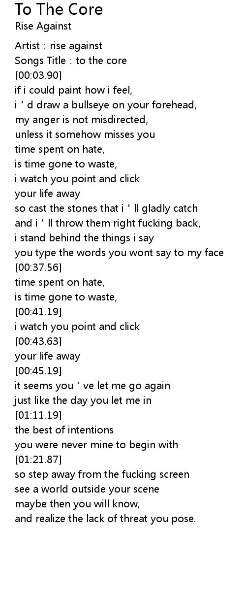 | [00:02.22] | Songs Title:to the core |