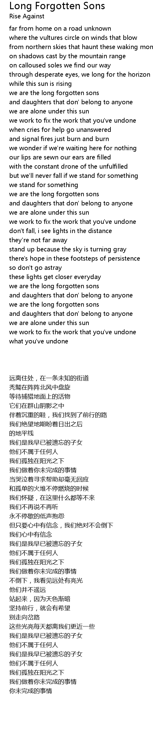 we are the long forgotten sons |