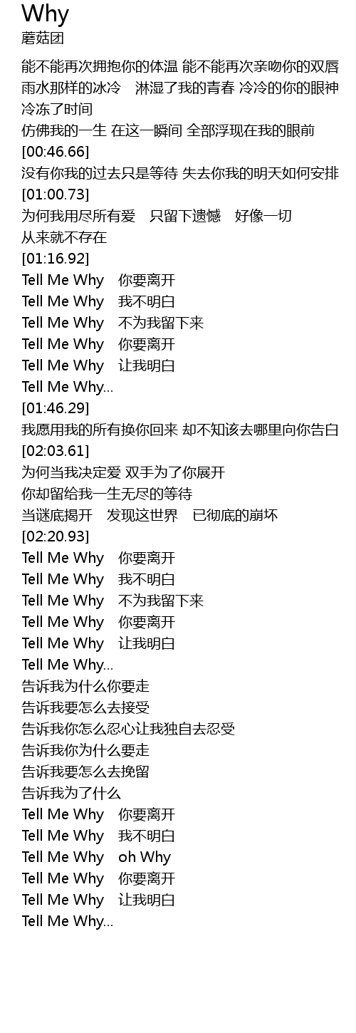 | [02:29.74] | Tell Me Why 不为我留下来 |