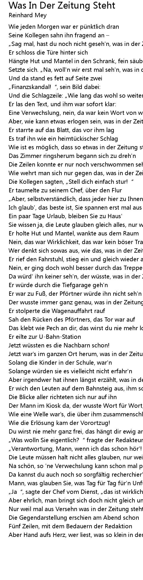 | Da wü rd' ihn keiner seh' n, der wü sste, was in der Zeitung steht! | |