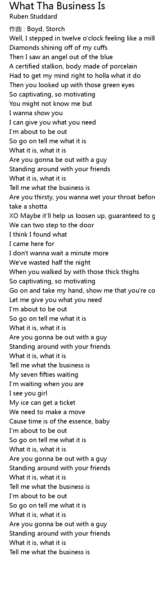 | 歌曲 | What Tha Business Is |