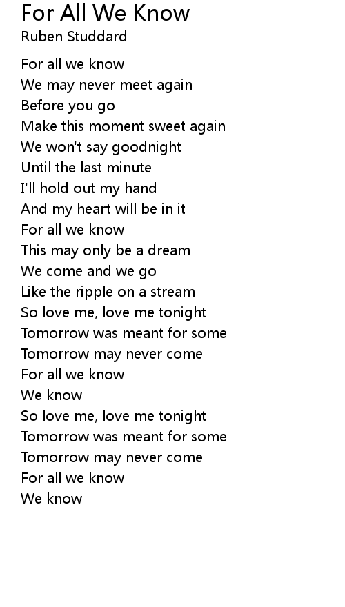 For All We Know 歌词