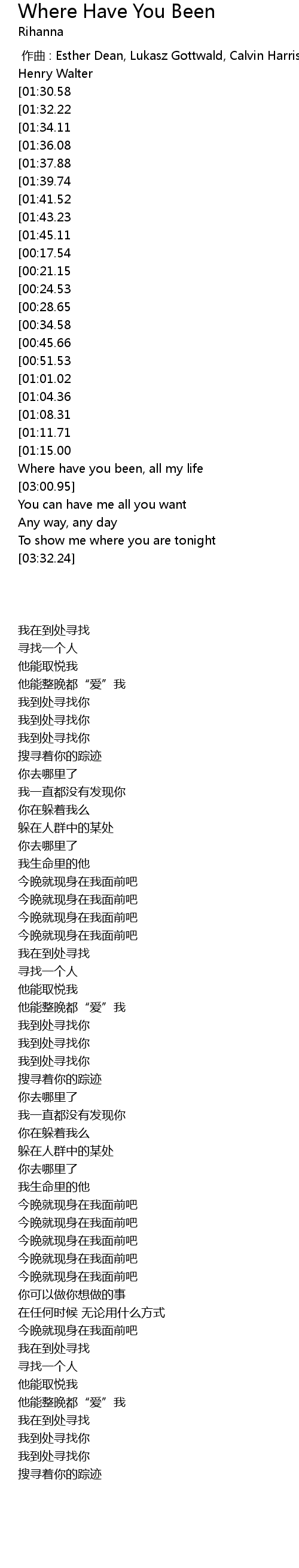 | [02:41.65][01:11.71] | Where have you been, all my life |