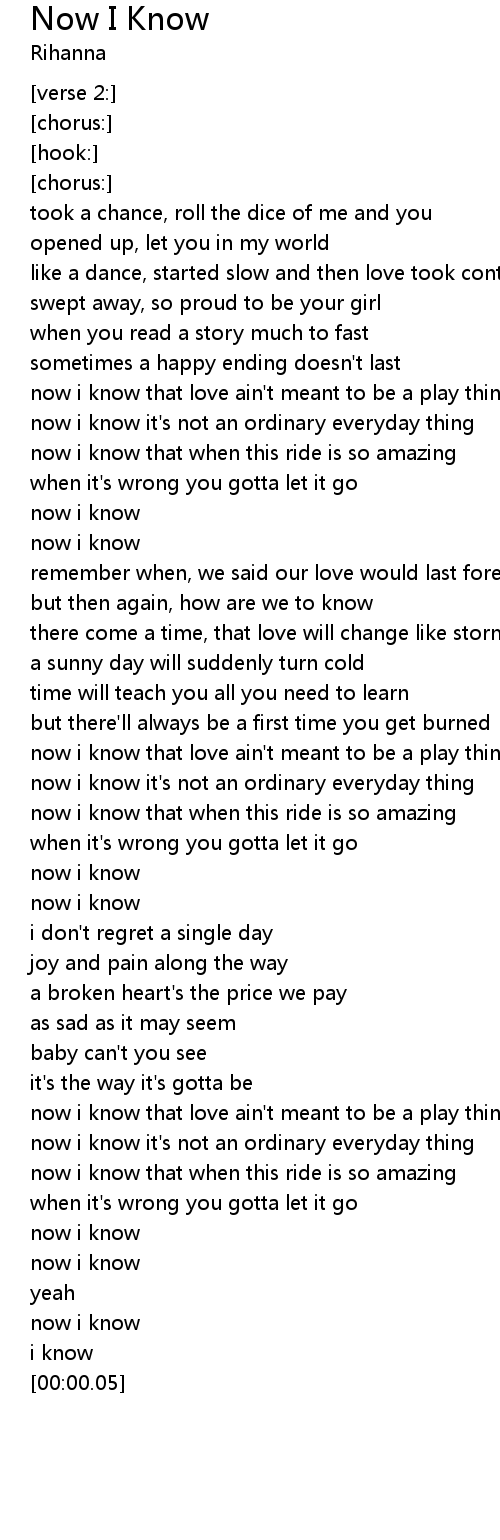 now i know |