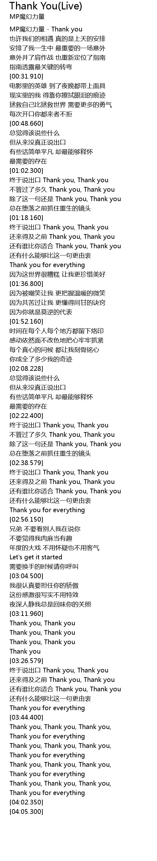 | [00:11.180] | MP魔幻力量 - Thank you |