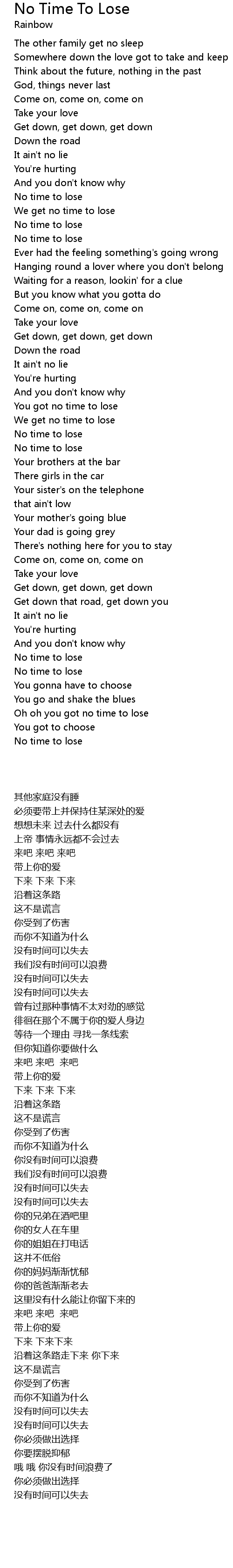 You got no time to lose |