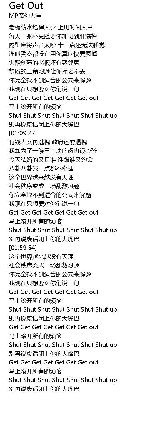 | [03:10.73] | Get Get Get Get Get Get Get out |