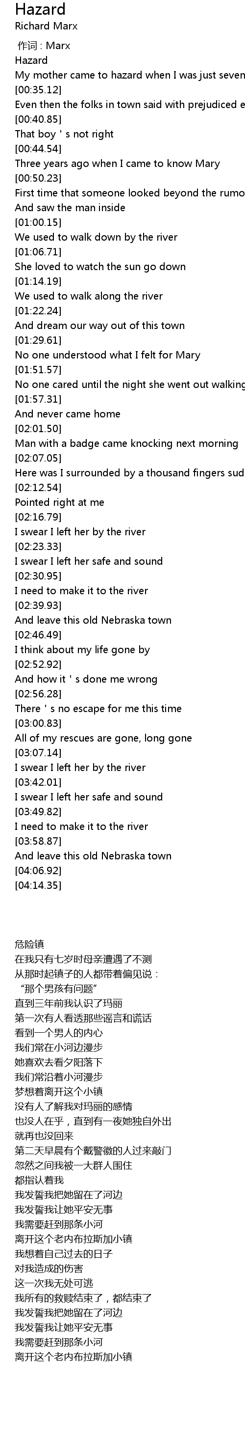| [03:37.64] | 我发誓我把她留在了河边 |