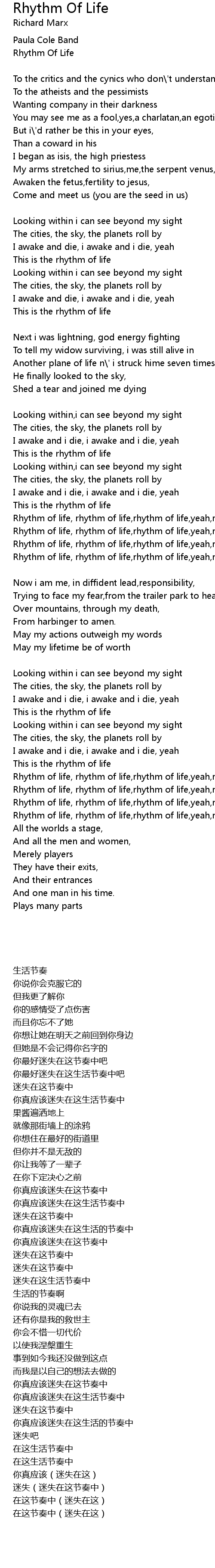 Rhythm Of Life 歌词
