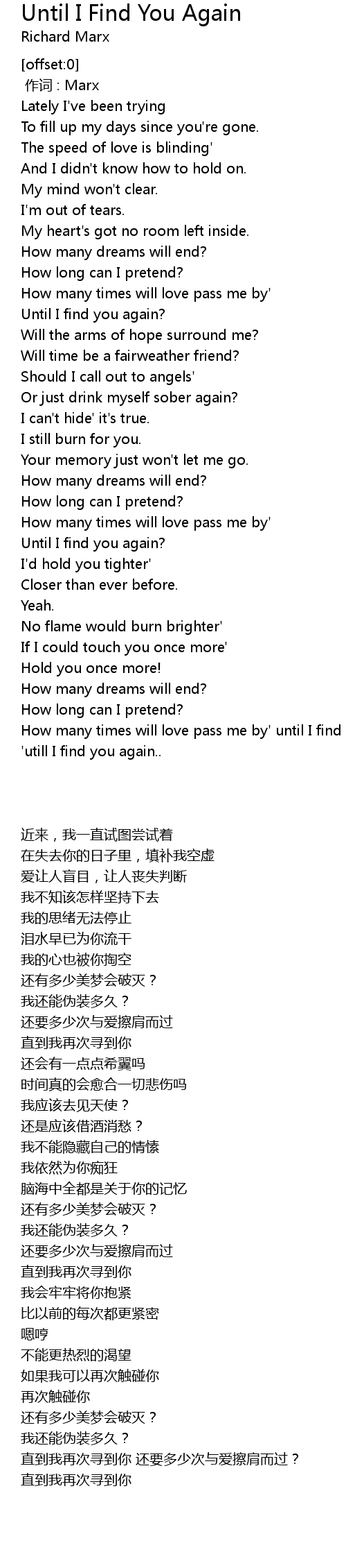 | 歌曲 | Until I Find You Again |