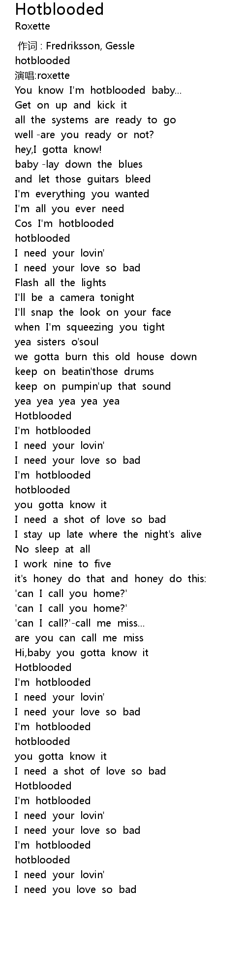 | [00:05.12] | You know I' m hotblooded baby... |