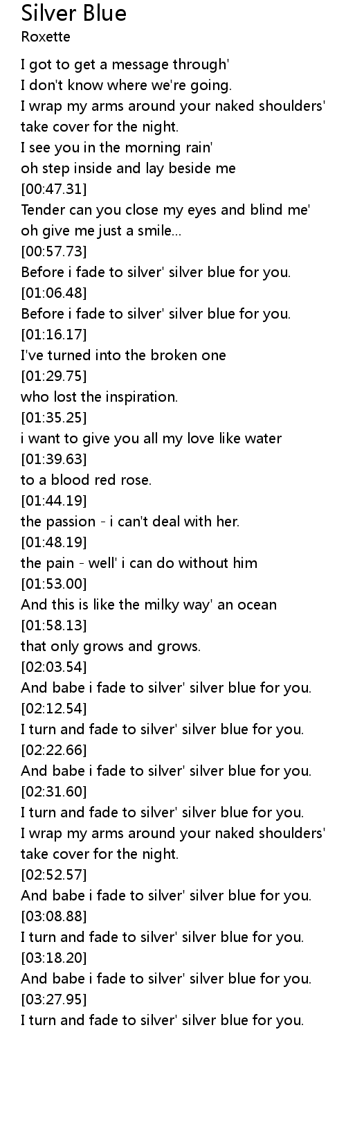 And babe i fade to silver' silver blue for you. |